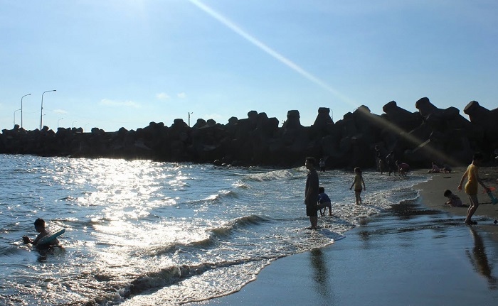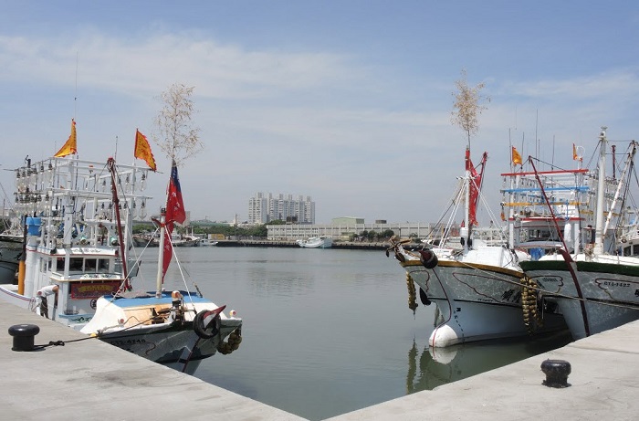 離開漯底山後,往梓官區(qū)前進,抵達蚵仔寮漁港。燦爛的陽光把海水照得閃閃發(fā)亮,停靠的漁船邊掛著串串的漁獲,也讓人看見討海人的辛苦。