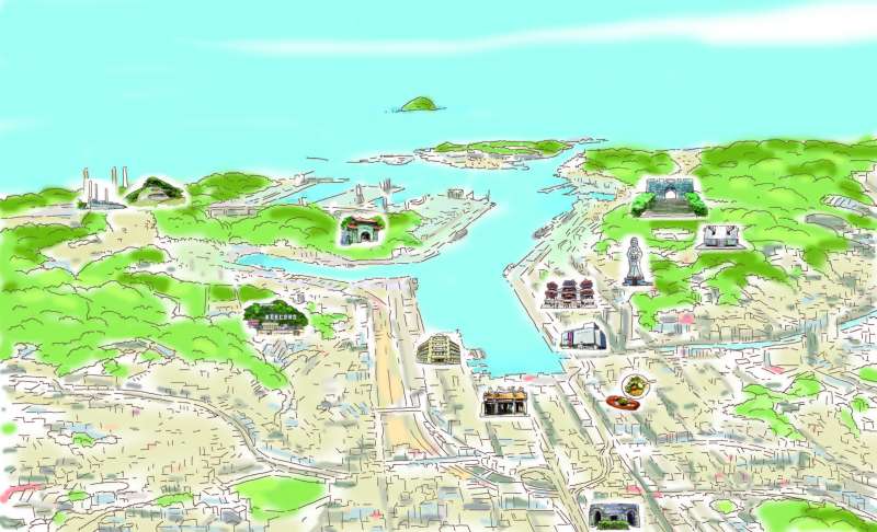 8. 白米甕炮臺:為日治時期基隆要塞防御炮臺,位在港口西岸山岰,山海景色迷人,電影《光陰的故事》曾在此取景,為景觀勝地。