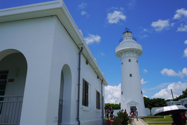 (西元1881年)興建的鵝鸞鼻燈塔,位于屏東縣鵝鸞鼻岬角,塔身為白色鐵造圓塔,是臺灣島最南的燈塔。燈樓面向西南方,背山臨海,并構筑成炮壘形式,圍墻有射擊的槍眼,四周并筑壕溝,是清廷防范原住民滋擾的防御工事,也使得鵝鸞鼻燈塔成為全球獨一無二的武裝燈塔。51年改建時,換上全臺光力最強的旋轉透鏡電燈,使得鵝鸞鼻燈塔不僅是全臺光程最遠的燈塔,還享有東亞之光的美譽。目前成為墾丁公園觀光勝地之一環,其地左瀕太平洋,面對巴士海峽,與菲律賓之呂宋島遙遙相對,波濤帆影,天水一色,自然景色,令人心曠神怡,早經列為臺灣八景之一。于81年起開放給民眾參觀。