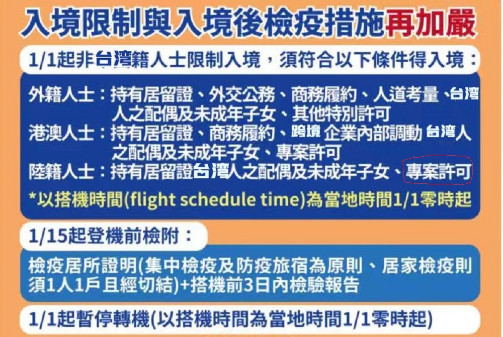 專案許可是什么鬼?什么類型的公司和業務符合專案許可?去臺灣旅游網第一時間電話咨詢了臺灣衛福部門(疾病管理指揮中心)、臺灣"移民署"、臺灣經濟部門,得到的回復是“為什么在疫情期間來臺,有無必要性?”