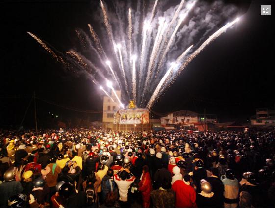 始自清領時期,相傳光緒年間鹽水發生大瘟疫,民眾祈求神跡降臨,沿途燃放炮竹直至天明。繞境結束后,鹽水疫情就此消退,民眾感念神恩,每年元宵夜沿襲成例,演變為今日赫赫有名之蜂炮盛會。