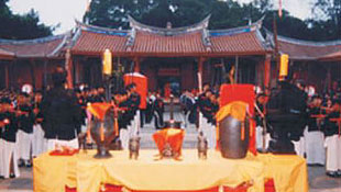 祭祀大成至圣先師孔子的典禮,稱為釋奠禮。釋、奠都有陳設、呈獻的意思,指的是在祭典中,陳設音樂、舞蹈,并且呈獻牲、酒等祭品,對孔子表示崇敬之意。主要活動:秋祭大典、古跡音樂沙龍、孔廟樂器、禮器文物展、孔廟導覽解說、六藝主題活動、明倫堂講學、兒童繪圖、讀經活動...等。參與祭孔大典時,請注意服裝儀容,著脫鞋或服裝儀容不整者,將無法進入觀禮席。現場規劃有攝影席,非配戴主辦單位之記者證,不得進入祭典區攝影,以免影響典禮進行。