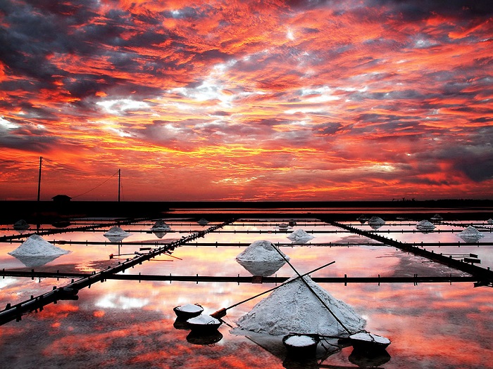 位于北門(mén)的井仔腳瓦盤(pán)鹽田,是臺(tái)灣現(xiàn)存唯一仍人工曬鹽的鹽田。來(lái)到這里不僅可騎單車(chē)體驗(yàn)鹽田風(fēng)光,也能親自體驗(yàn)曬鹽、挑鹽、收鹽及踩水車(chē)等樂(lè)趣。