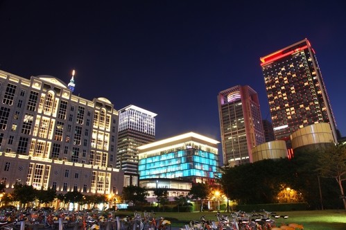 【信義商圈】 時尚潮流的百貨商場,云集全臺最多品牌的國際精品,入夜后的樓燈,讓信義區更加閃亮。