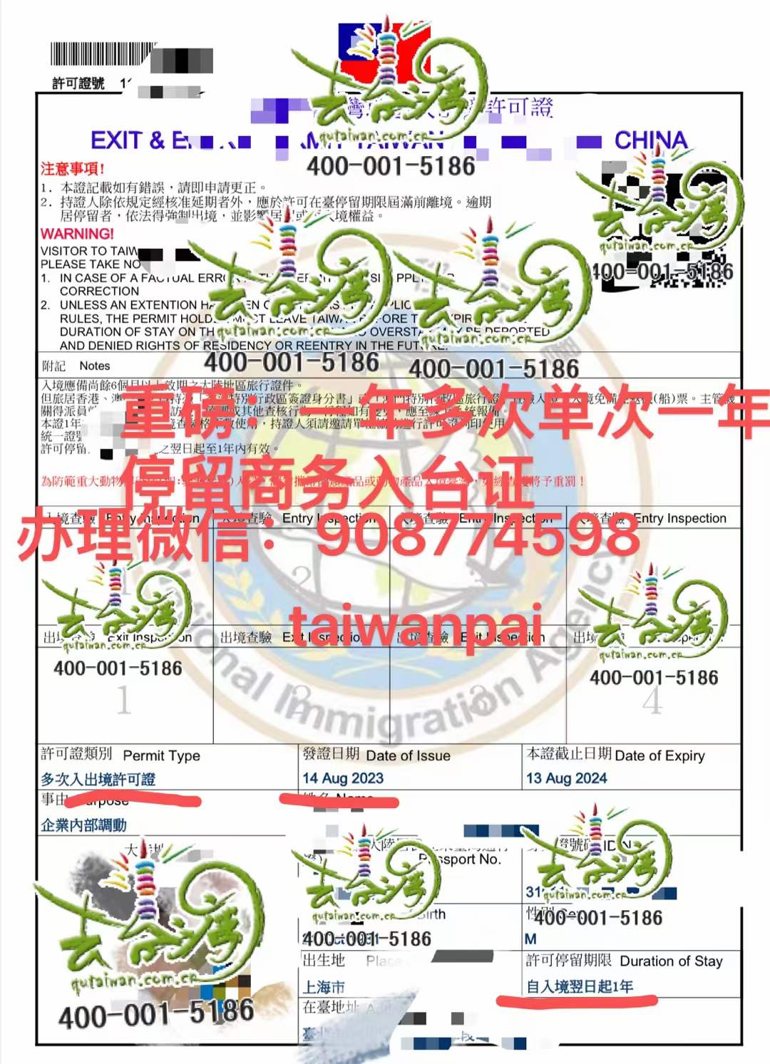 2023年8月14日:2023年第一張一年多次,單次可以停留365天的商務(wù)入臺(tái)證出爐。一年內(nèi)可以隨意進(jìn)出,不需要報(bào)備!本來我們團(tuán)隊(duì)想給客戶申請(qǐng)三年多次的,和臺(tái)灣移民屬磨了好久最后拿到了一年多次!非常辦證,使命必達(dá)!